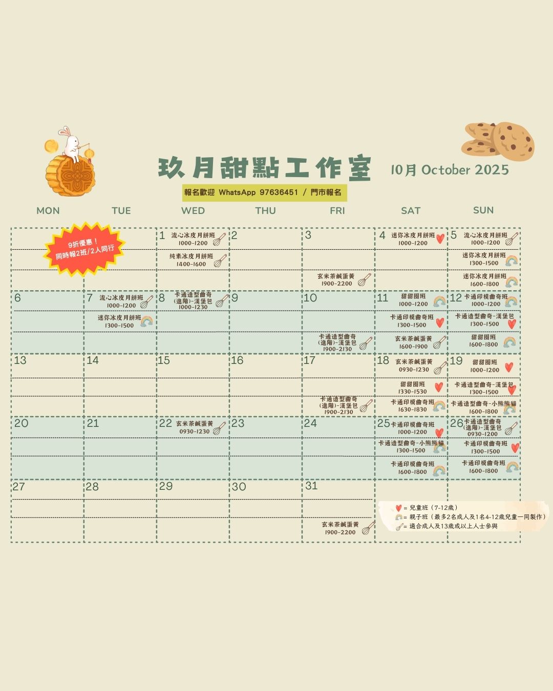 每位學員可帶走8個30g冰皮月餅 課堂約2小時 |